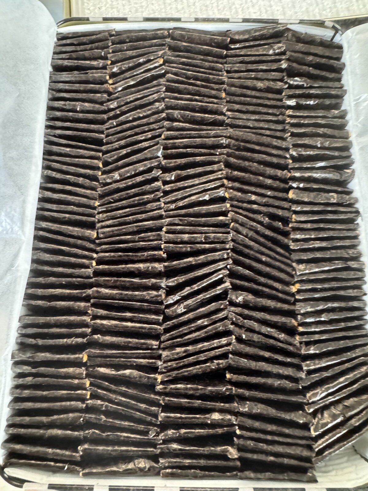 青のりの風味の羊羹とは、これまた初めてで、口の中が驚いております。