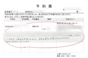 こちらは本当にごめんなさい。予約票の裏に書いてあったの診察中に気が付きませんでした。