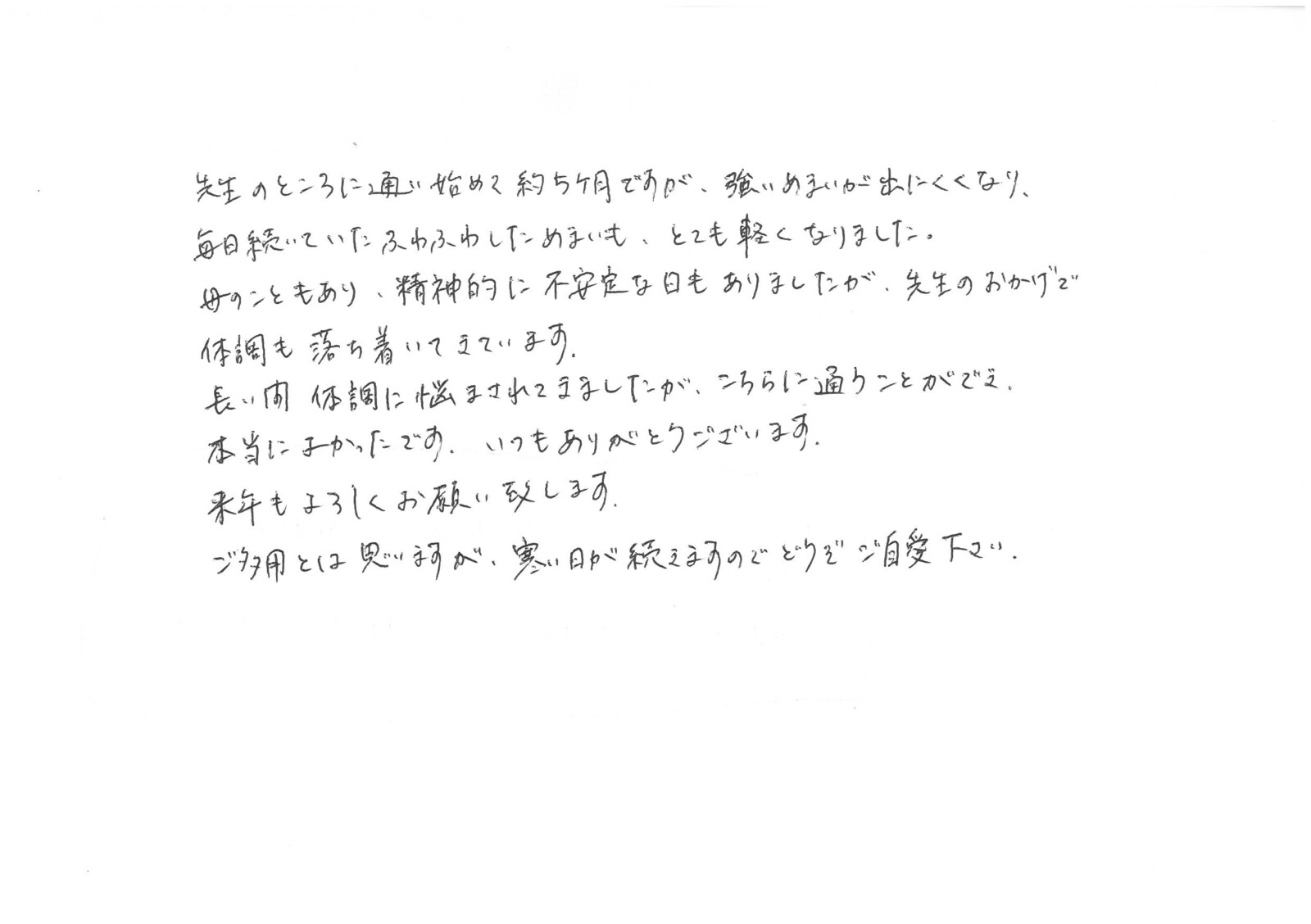 この一年、多くの患者さんから診療について感謝のお言葉をいただき、